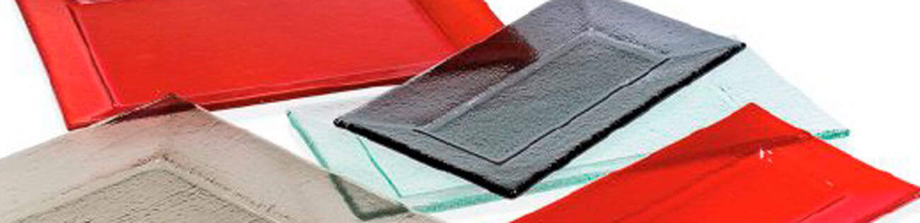 Das Bild zeigt verschiedene Farbtöne von Glasscheiben, die gestapelt sind.